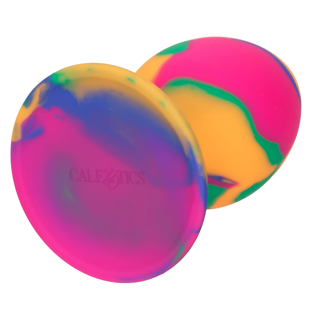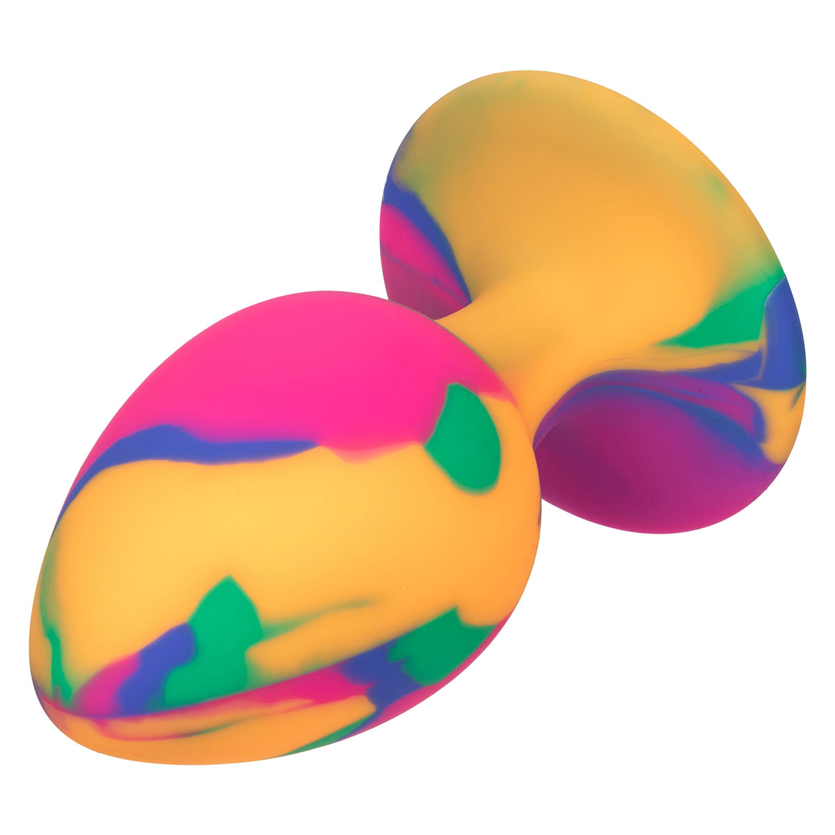 Odličen silikonski analni čep klasičnega dizajna v neustavljivi psihedelični tie-dye tehniki barvanja!
