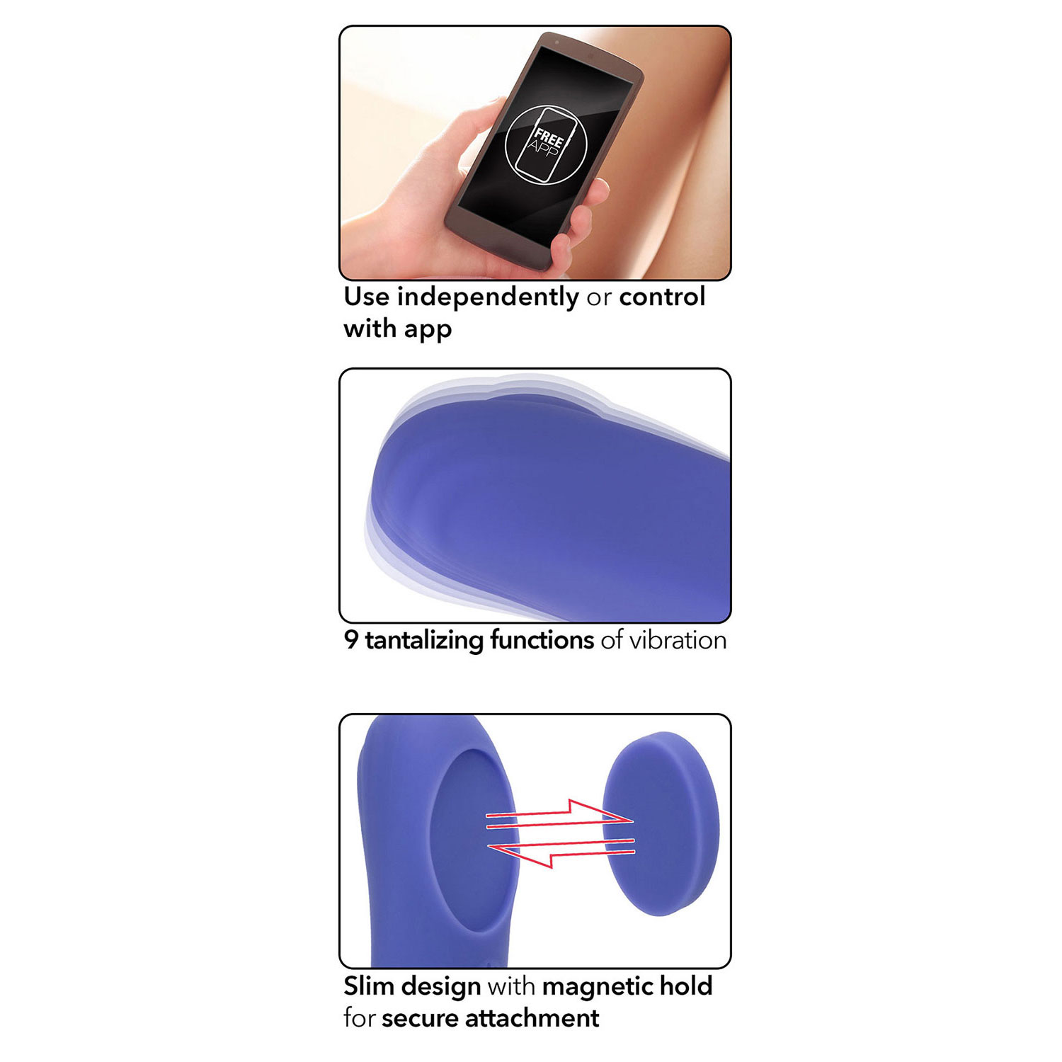 Connect App – Panty Teaser je genialno oblikovan vibrator, ki se na hlačke pritrdi s pomočjo magneta (kar ga izjemno trdno zadrži točno tam, kjer mora biti), njegovo tanko, ozko in daljše telo z rahlo ukrivljeno krivuljo pa je idealno za stalno stimulacijo klitorisa.