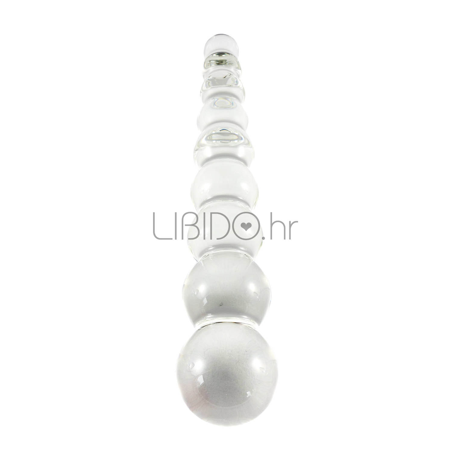 Ta dildo je dejansko niz povezanih steklenih kroglic, kar omogoča neprekinjeno stimulacijo med vstavljanjem in izvlekom ter olajša ohranjanje mišic na želenem premeru. Steklo dobro ohranja temperaturo in je odlično za igro s toploto in hladom.