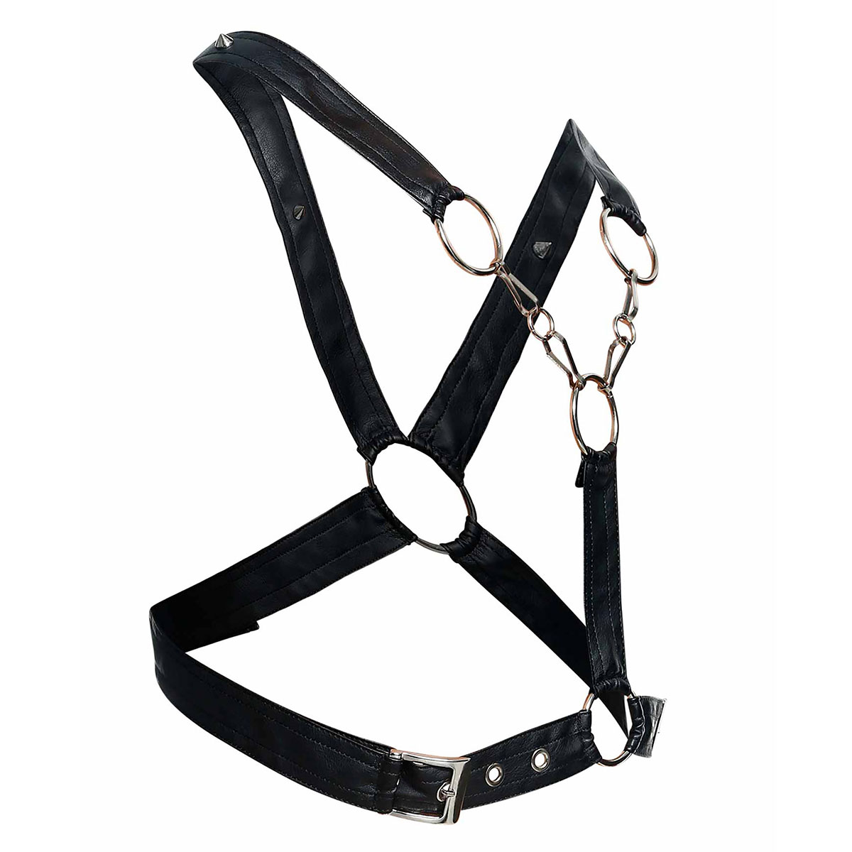 Seksi pas iz umetnega usnja. Vrstica zaponk in drugih kovinskih detajlov bo dodatno poudarila vaš mačo videz.