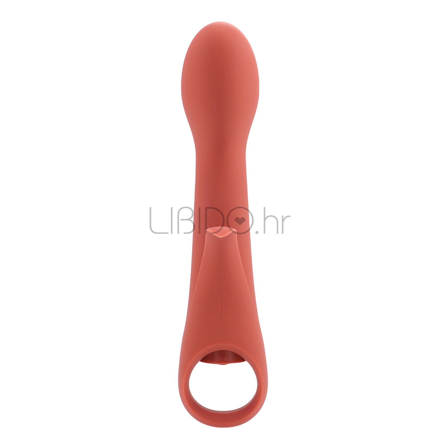 Zelo prefinjeno zasnovan rabbit vibrator z izpostavljenim vrhom za boljšo stimulacijo G-točke.