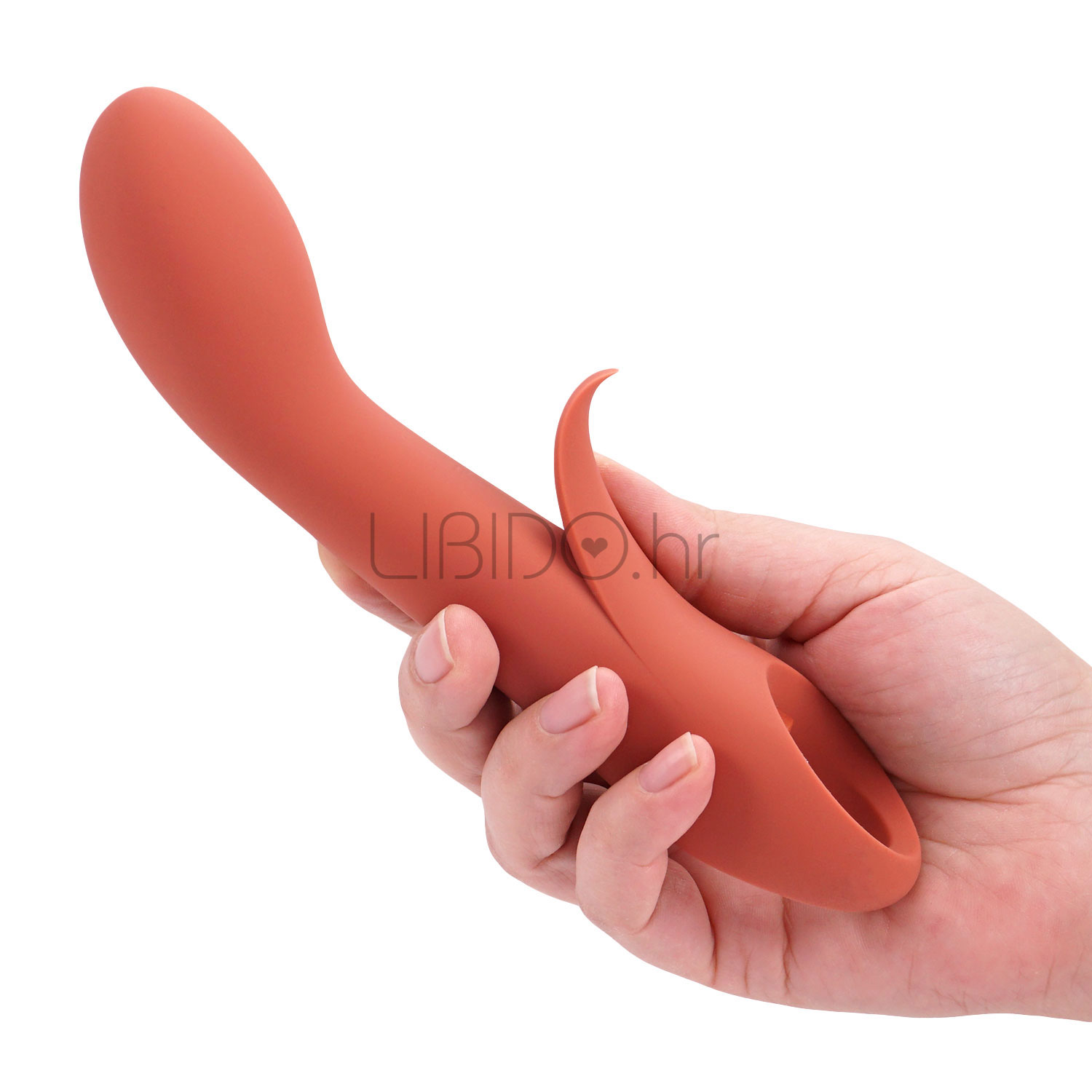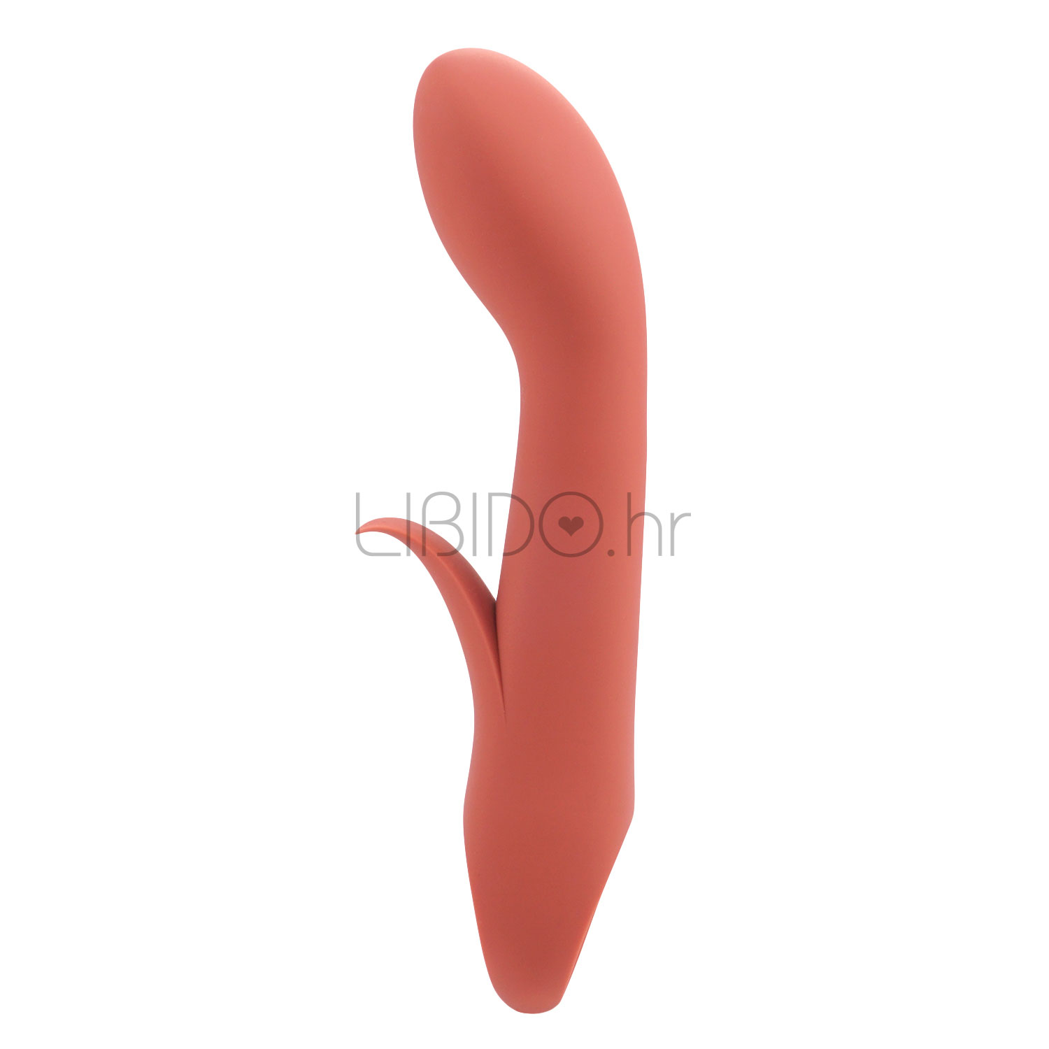 Vrh je odebeljen, da lahko vibrator lažje pozicionirate na G-točko. Prav tako je izjemno fleksibilen, tako da lahko prilagodite kot in položaj svojim preferencam. Vibracije so najbolj izrazite na vrhu in se manj prenašajo na dodatek za stimulacijo klitorisa, kar bo zagotovilo samo zelo nežno stimulacijo.