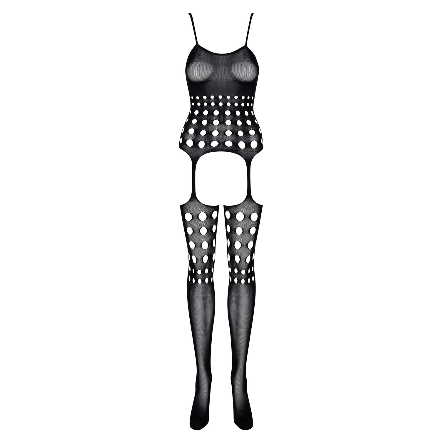 Zelo preprost in rafiniran catsuit je okrašen le z nežno, a zelo učinkovito optično iluzijo – nizi odprtin, ki se zožujejo od pasu proti prsim in nogam, kar odlično poudari vaše glavne prednosti.