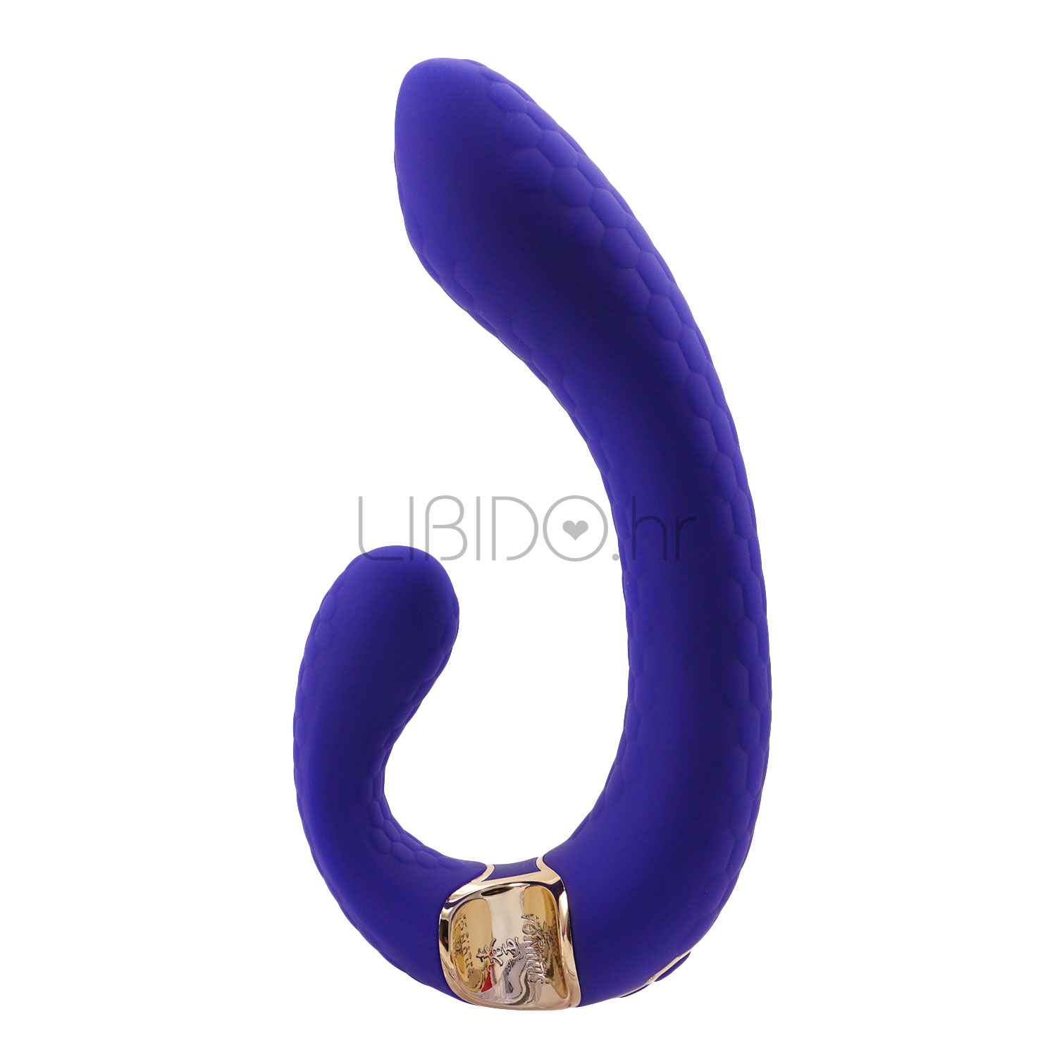 Površina je teksturirana z geometrijskim luskastim vzorcem, ki bo nudil dodatno stimulacijo med penetracijo in vibriranjem. Silikon je svilenkasto gladek na dotik. Kraki so delno prilagodljivi, da ga boste lažje nastavili, vendar dovolj čvrsti za natančno stimulacijo. Zadebeljen vrh olajša stimulacijo G-točke.