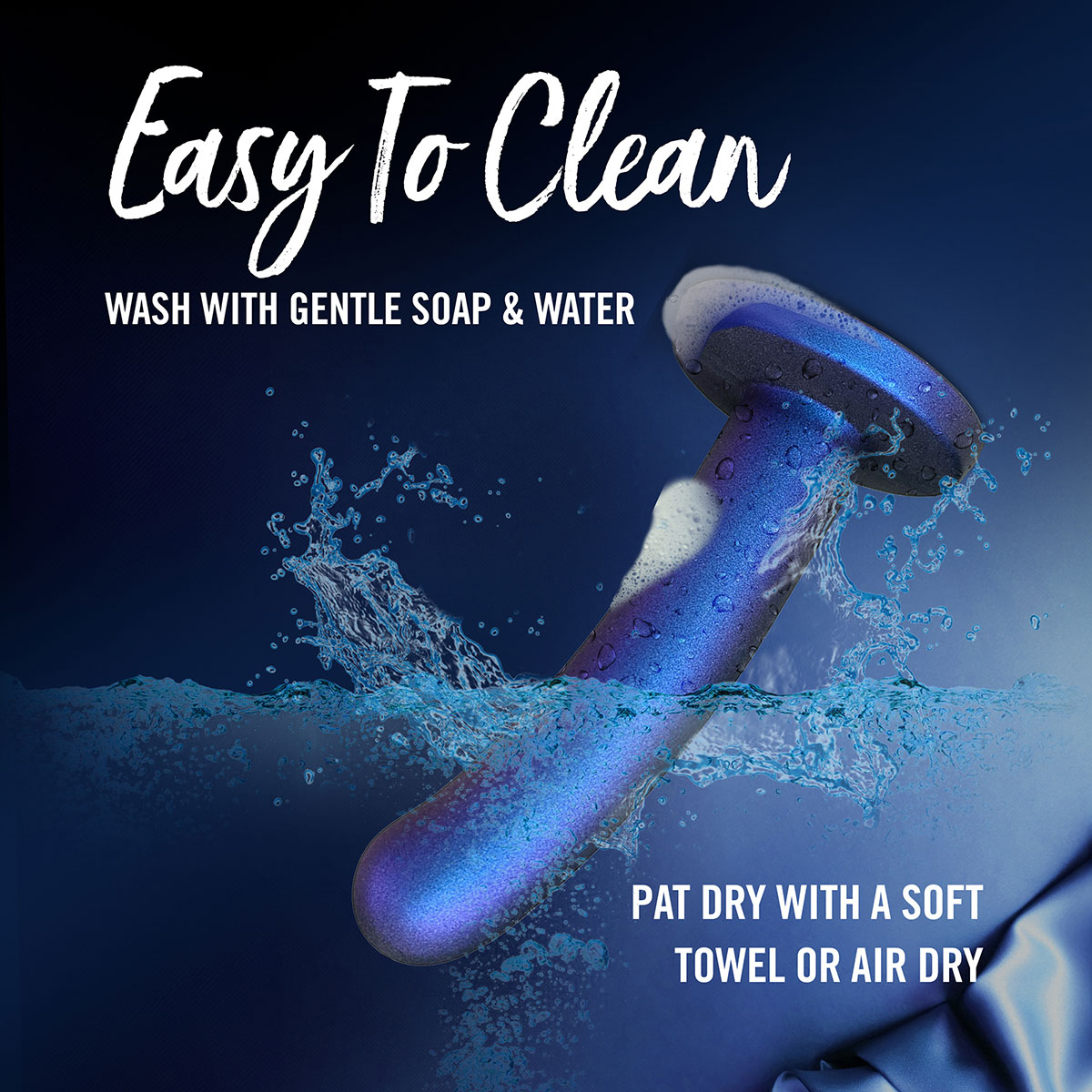 Izdelan je iz vrhunskega Puria platinum silikona, ki je žametno gladek na otip, ne vsebuje ftalatov ali drugih škodljivih snovi in je popolnoma varen za telo. Pred in po uporabi ga operite z vodo in blagim milom, po želji pa ga lahko dodatno sterilizirate z nekajminutnim potapljanjem v vrelo vodo.